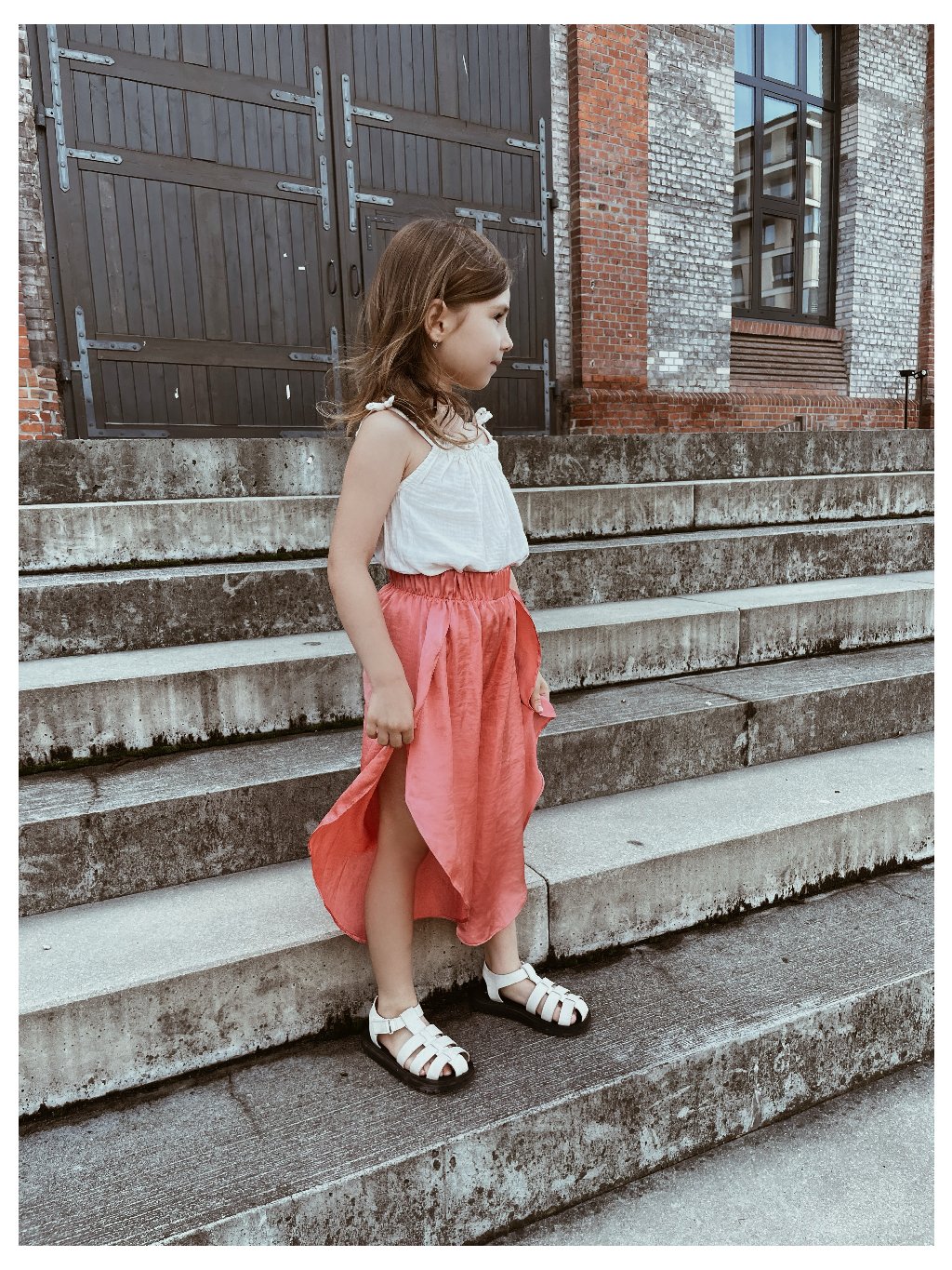 Velikost XS: doporučeno od 3 do 6 let. Modelka má 4,5 let. Pas: 44 až 70 cm, celková délka od pasu 60 cm