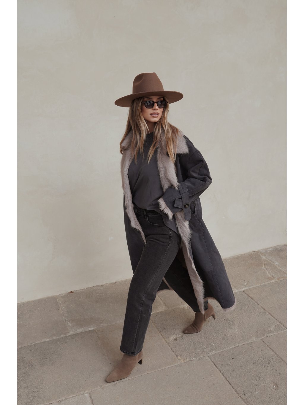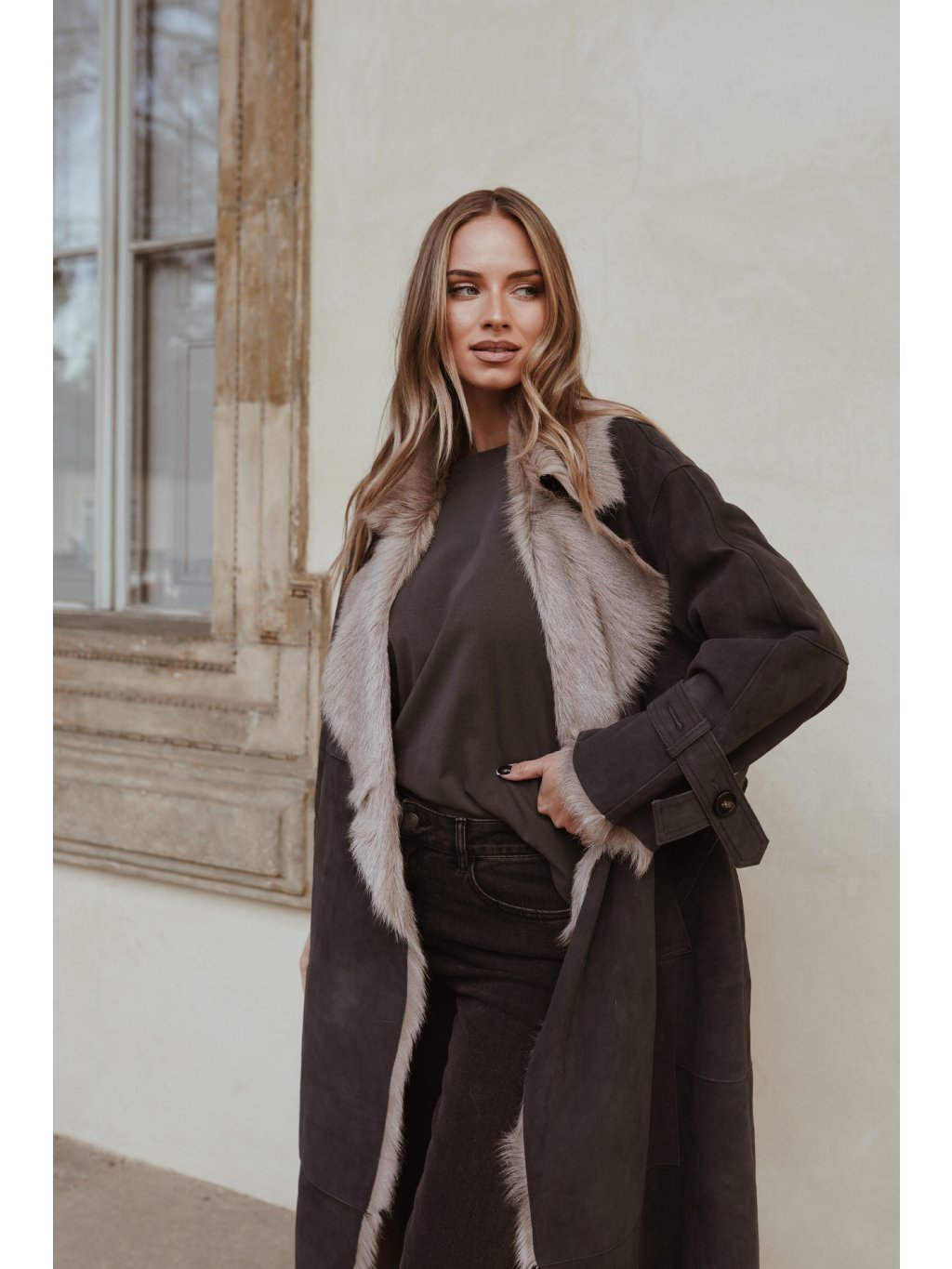 Matný povrch v tmavém odstínu v kontrastu se světlou kožešinou