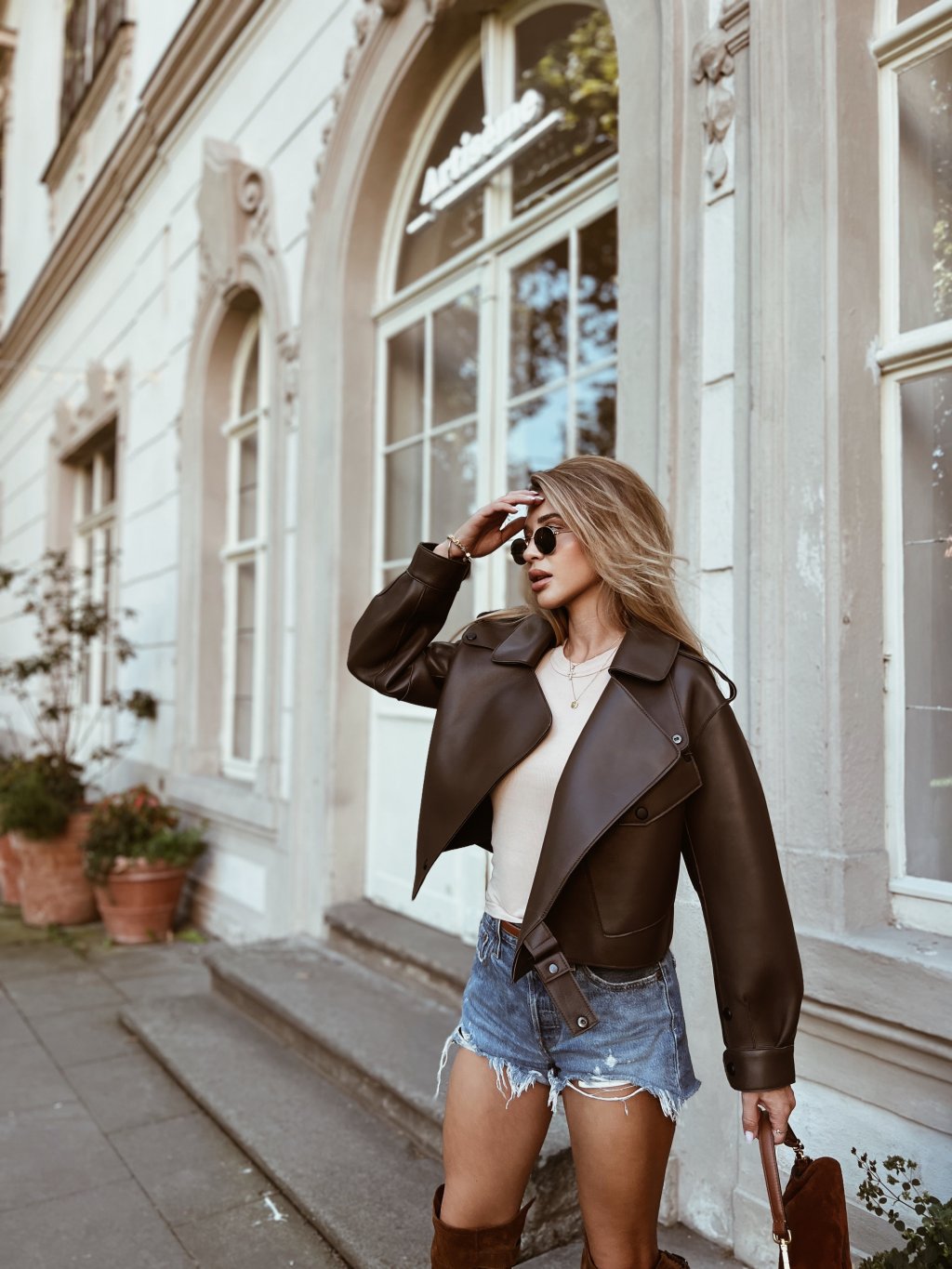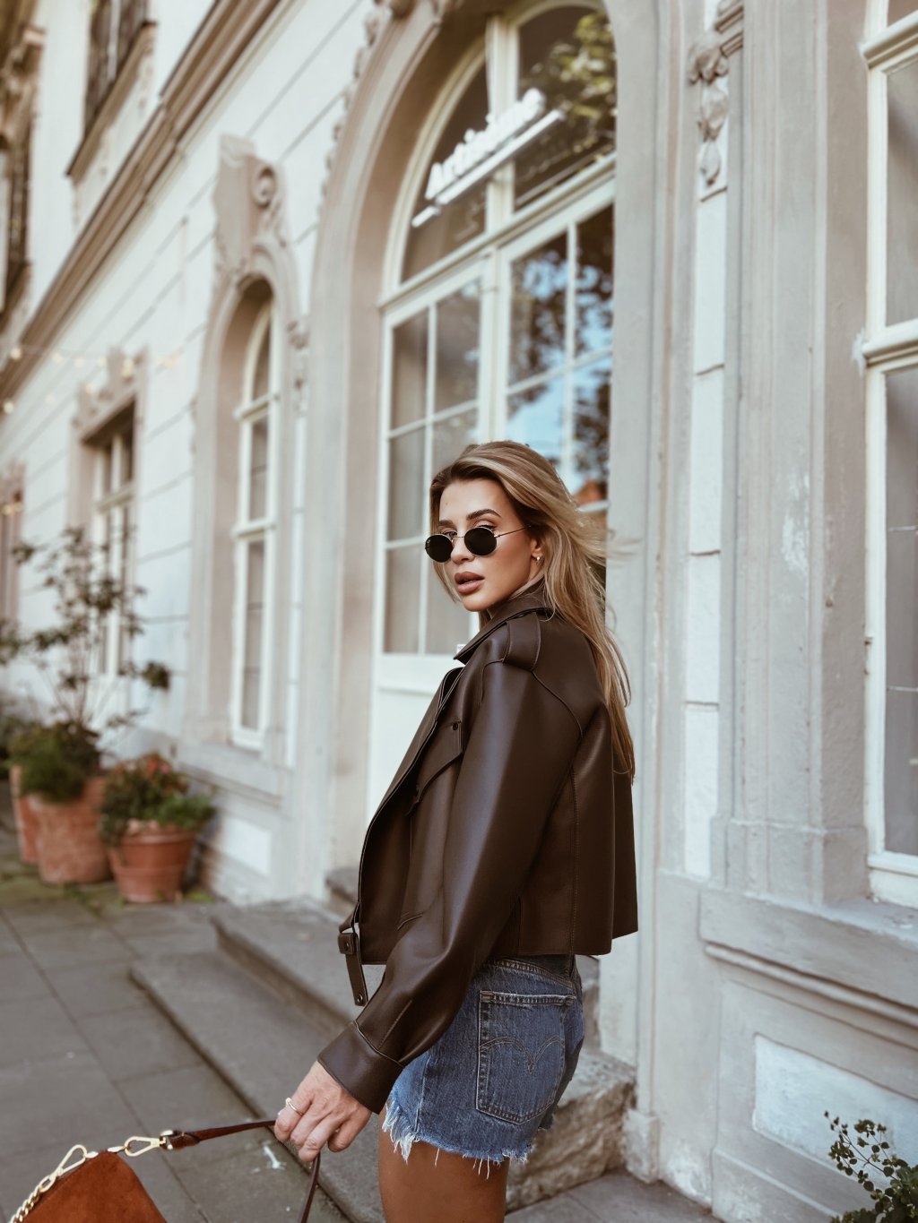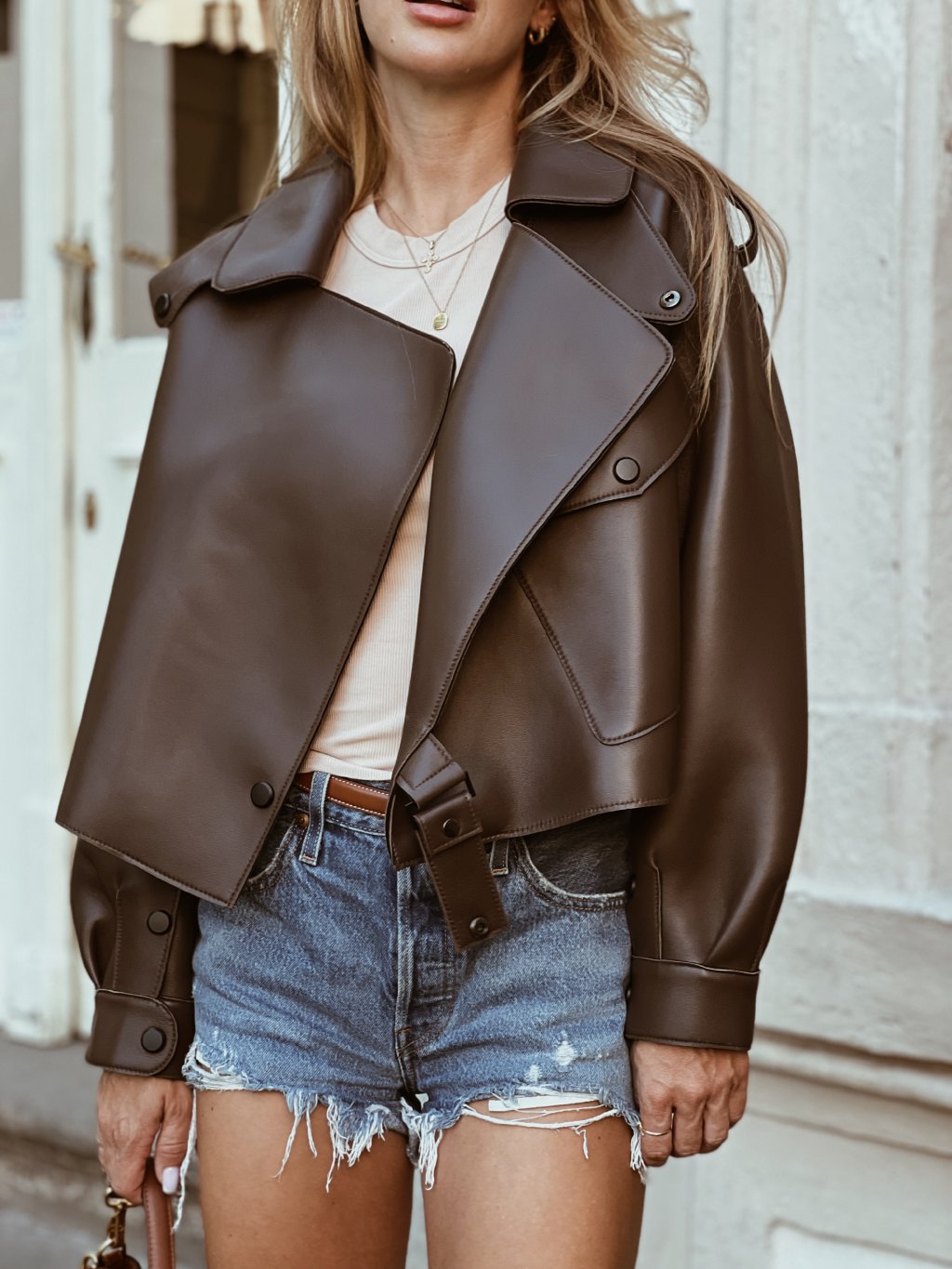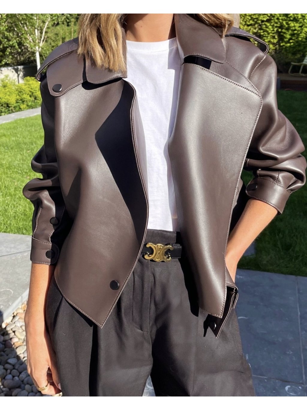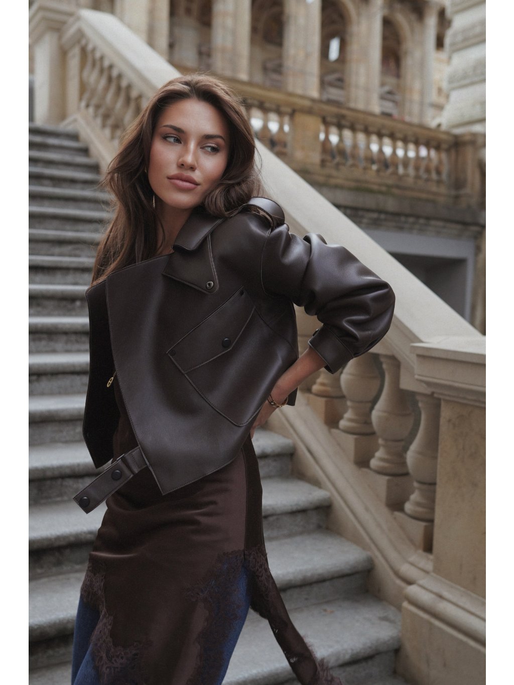 Modelka na sobě má velikost M pro oversize vzhled