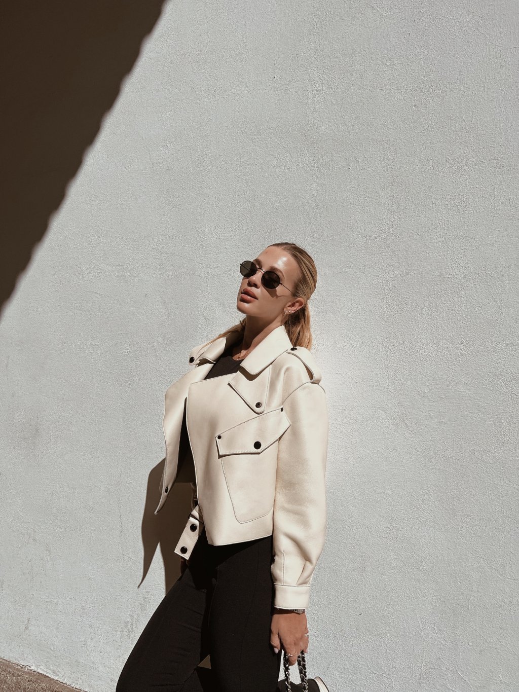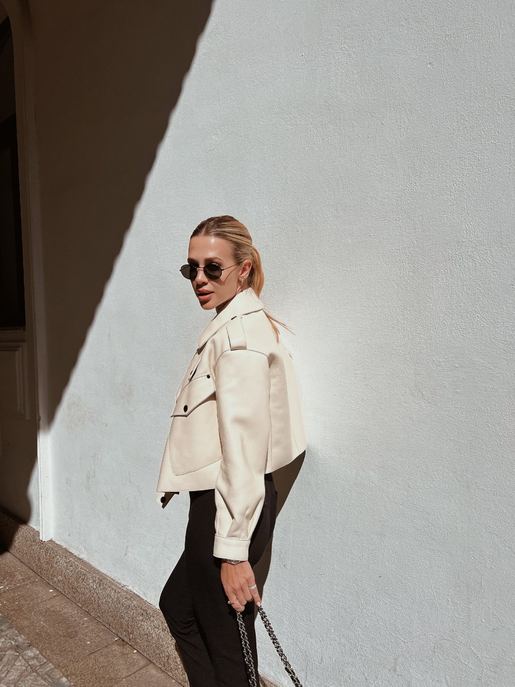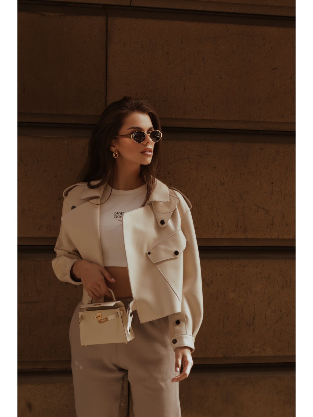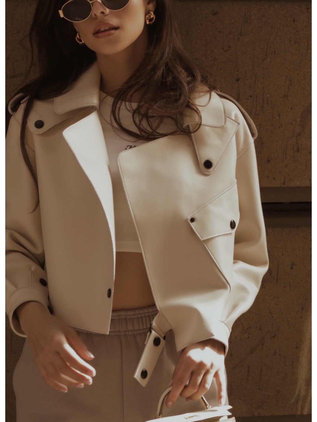 Modelka na sobě má velikost M pro oversize vzhled