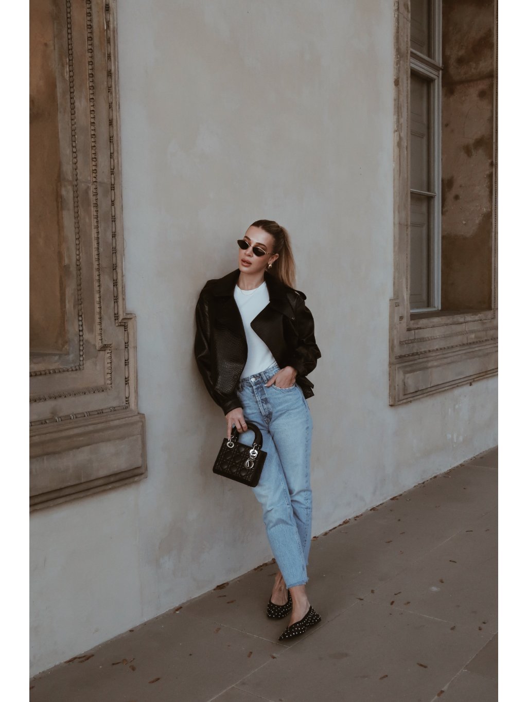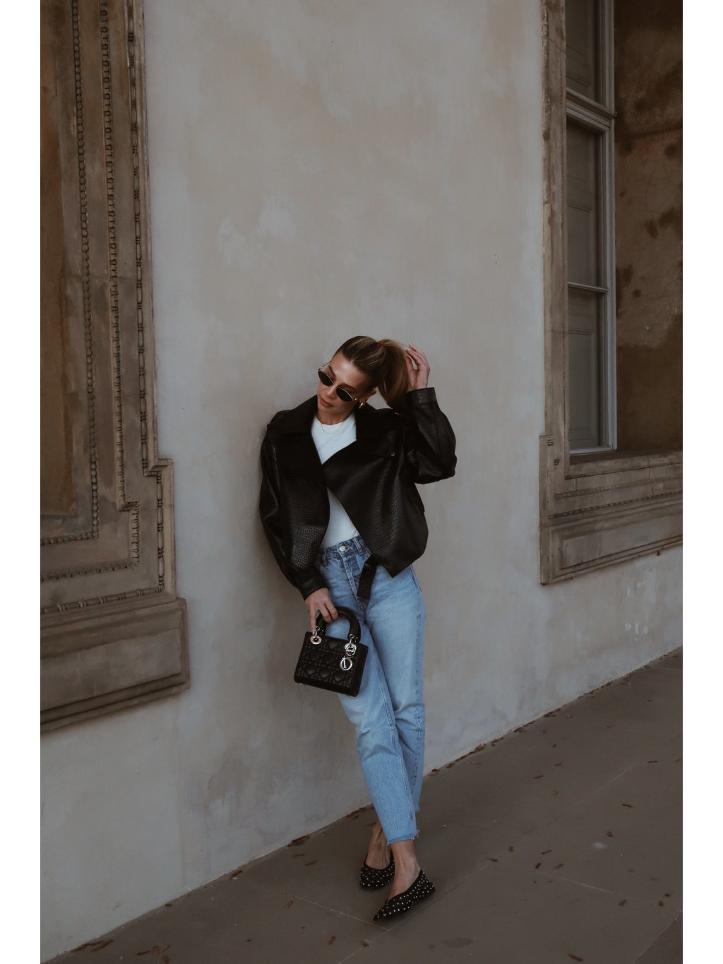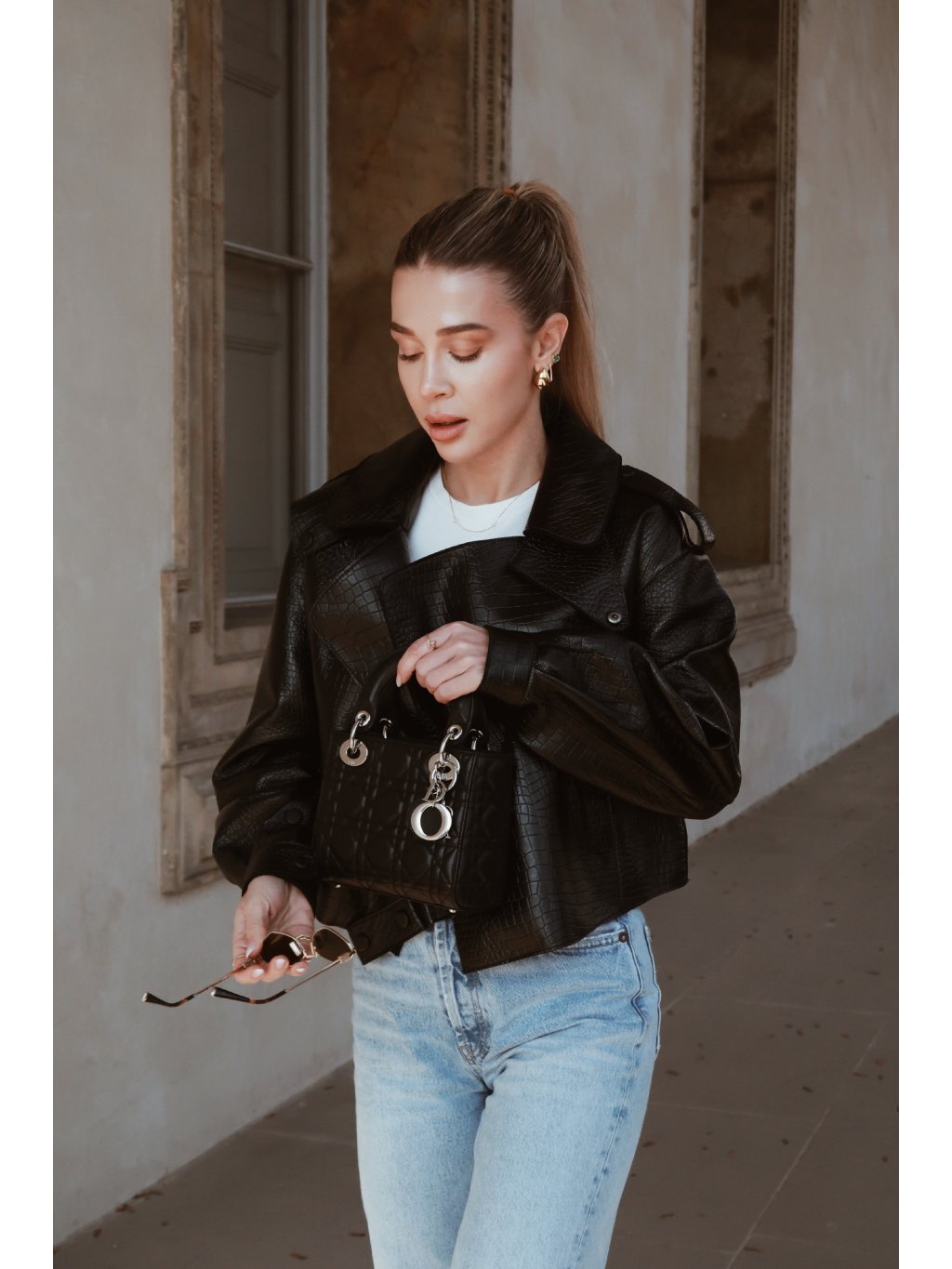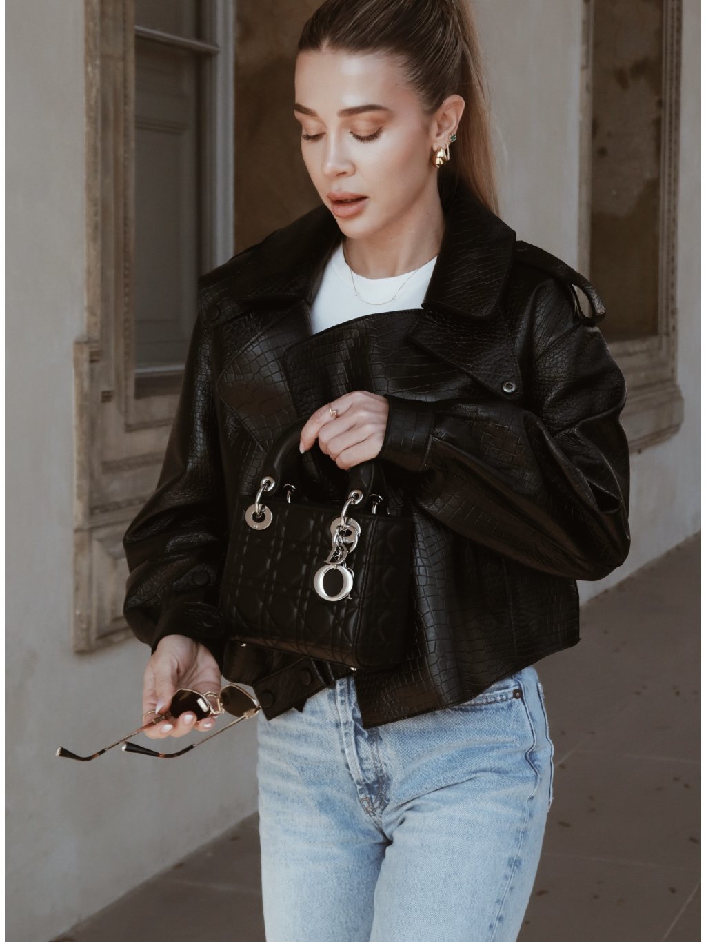 Stylová kožená dámská bunda v černé barvě s croco efektem