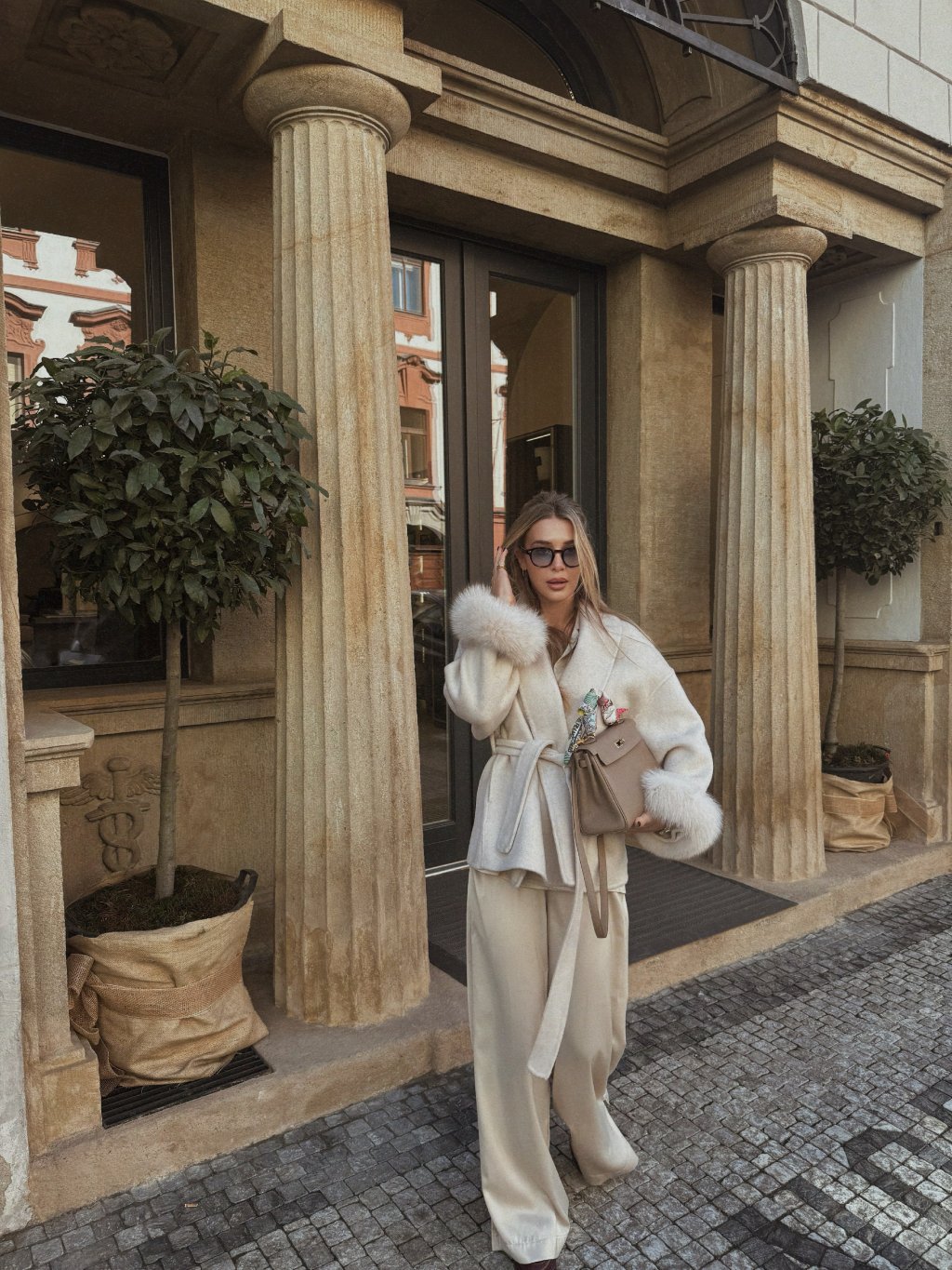 Stylový dámský krátký krémový kabáte Tracy