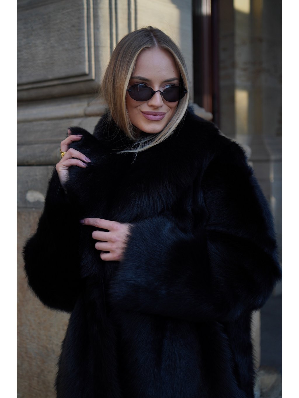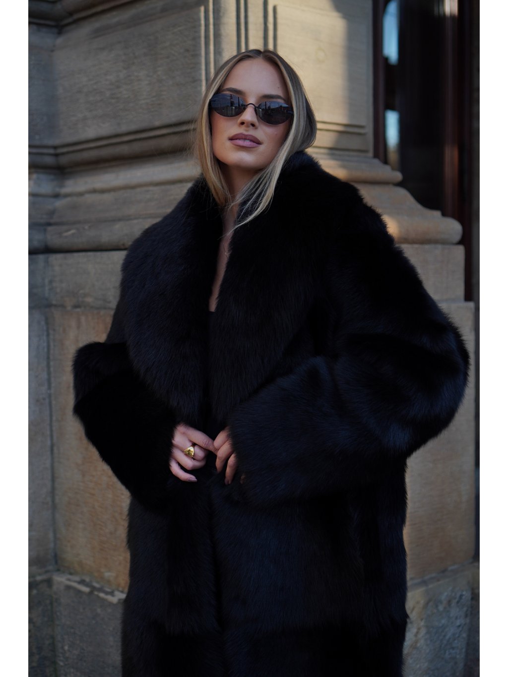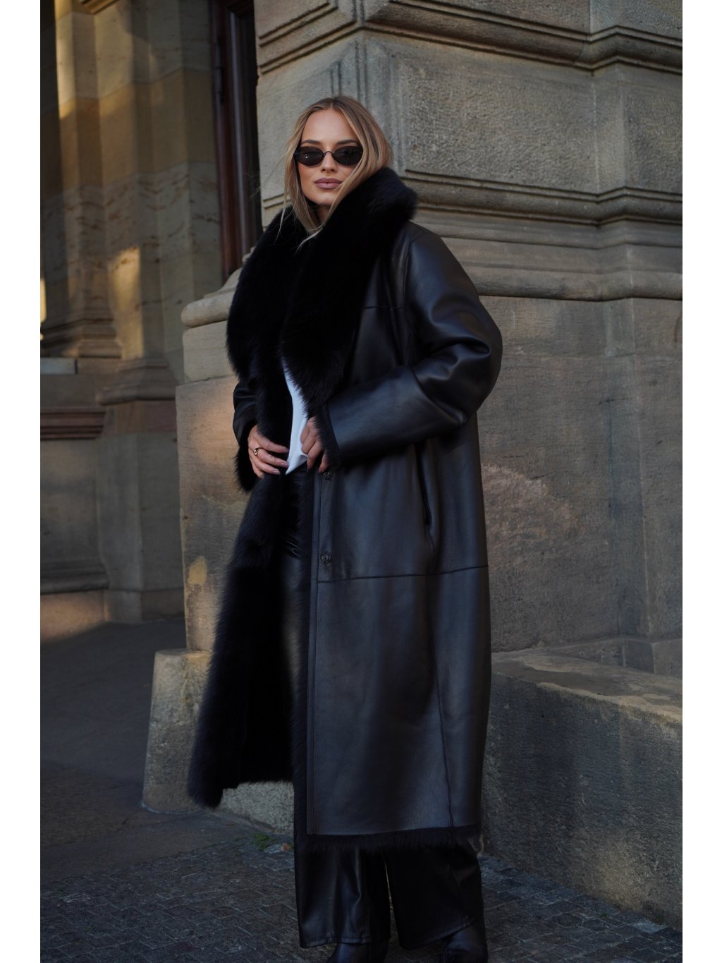 Maxi kabát Shearling Black