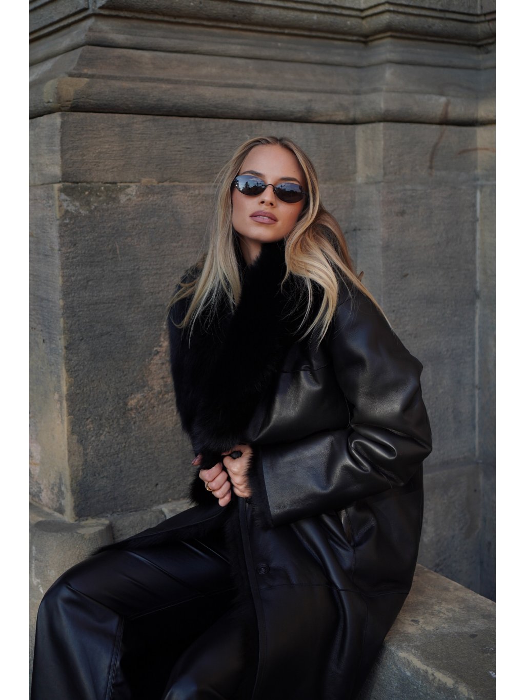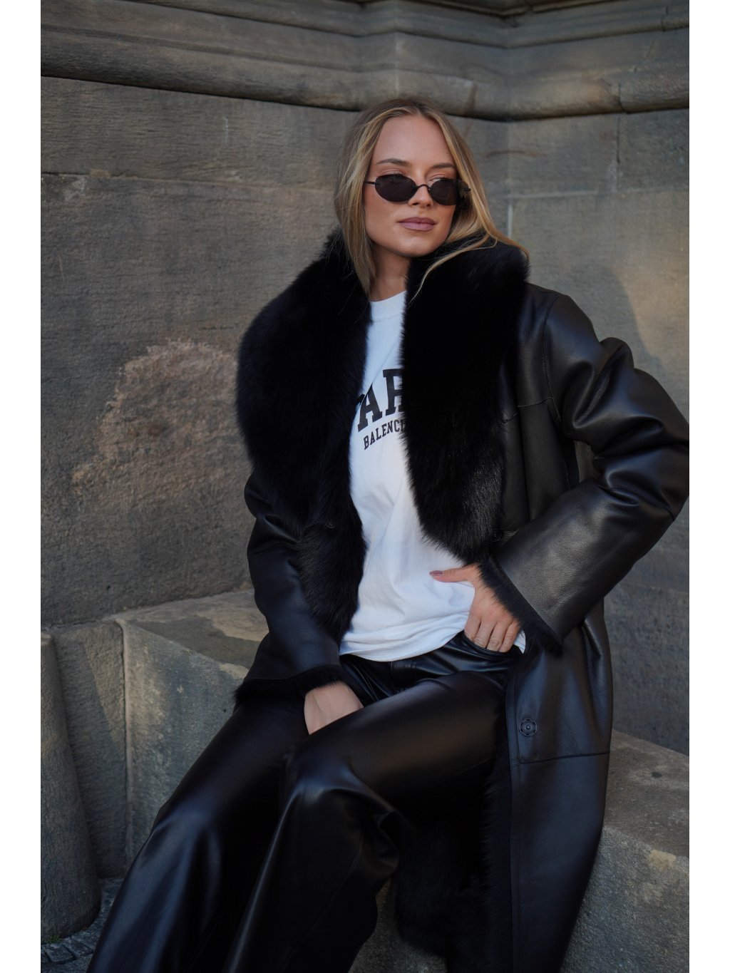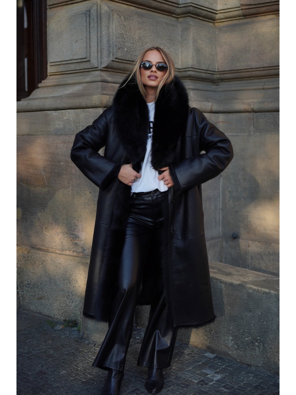 Maxi kabát Shearling Black
