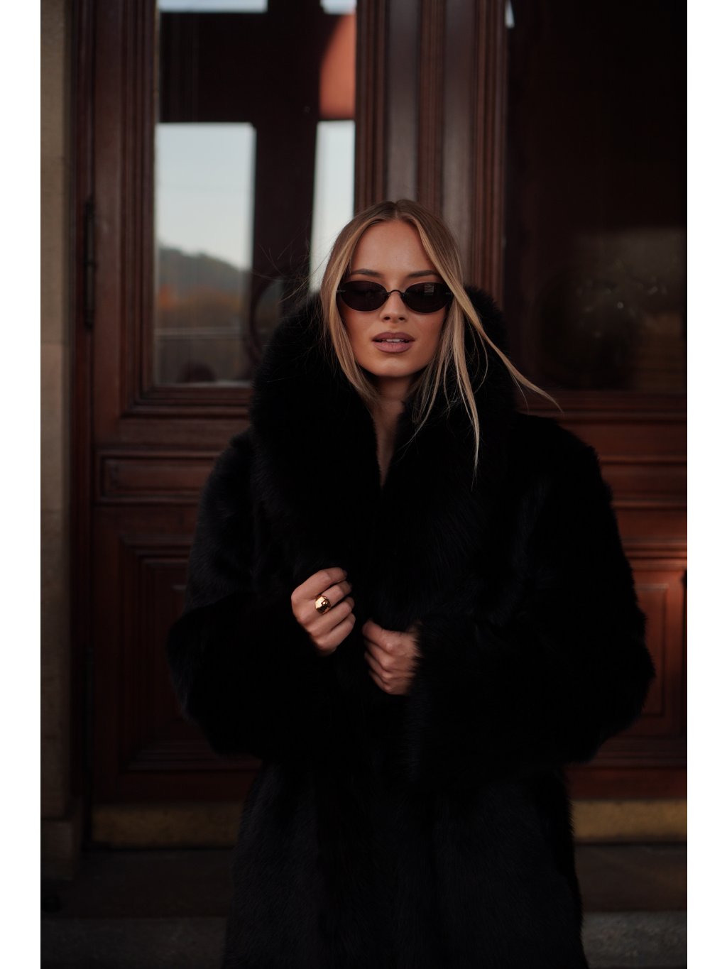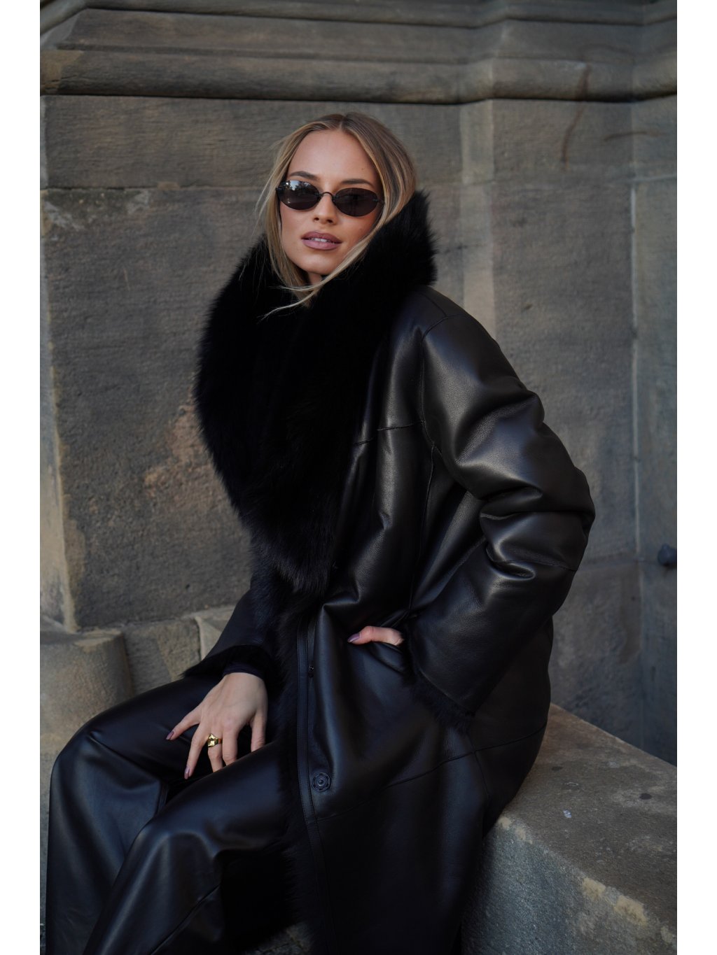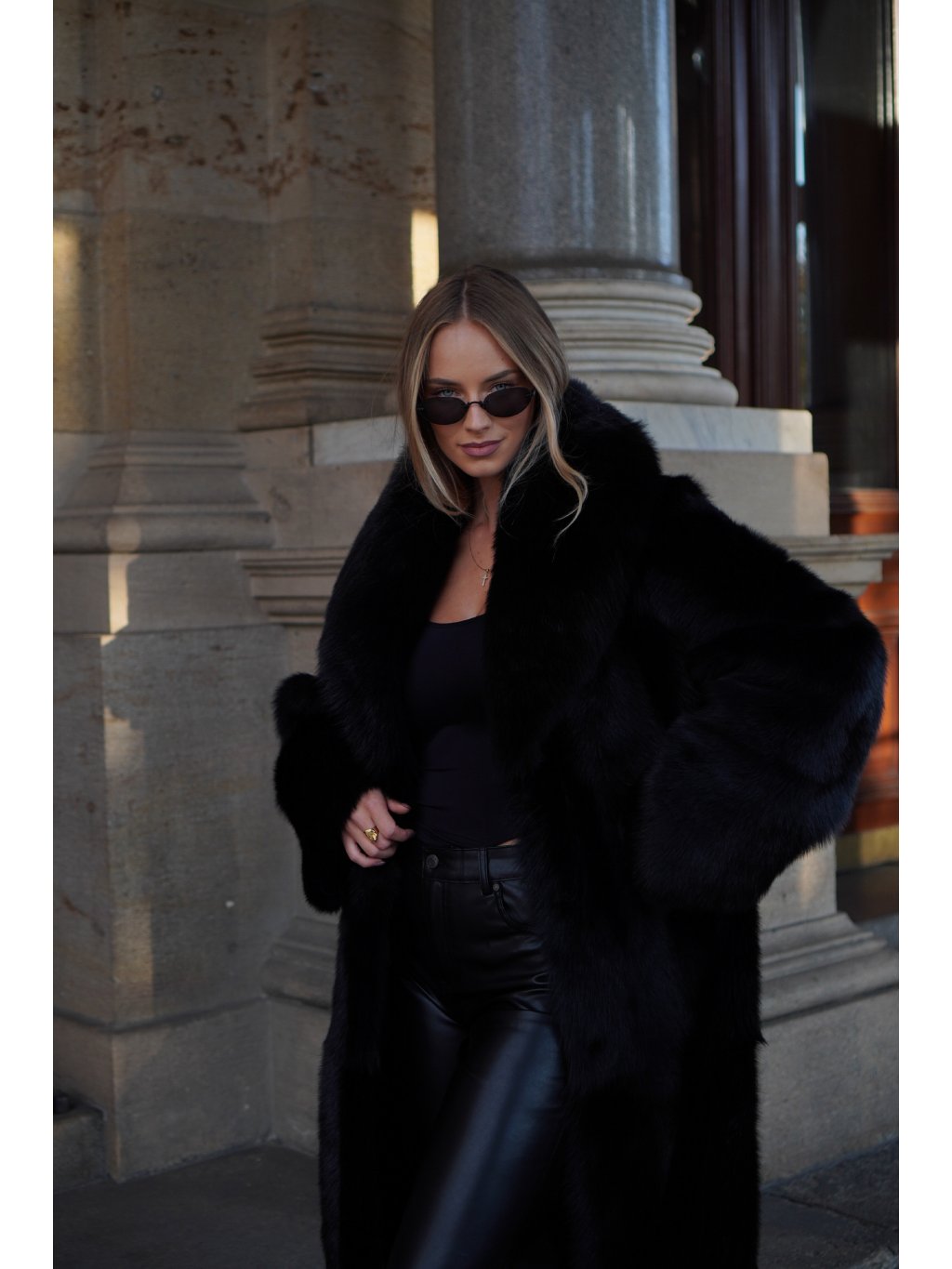 Černý maxi kabát Shearling