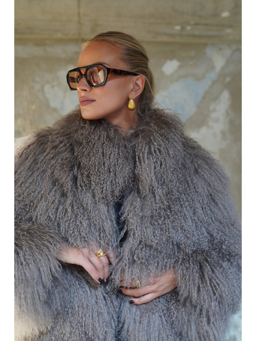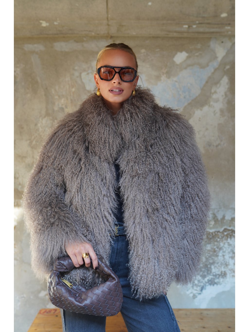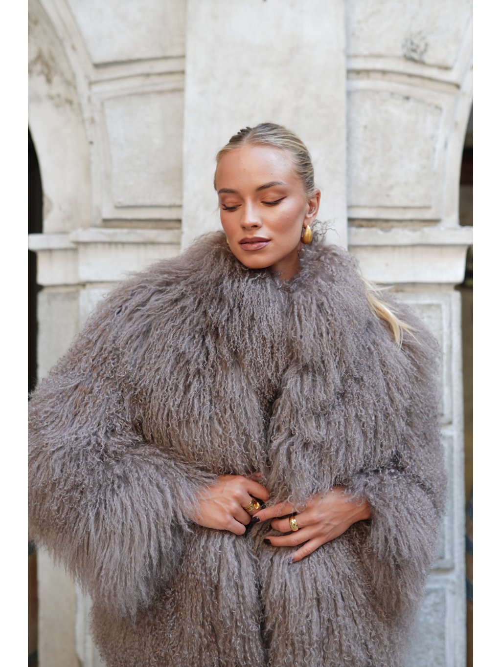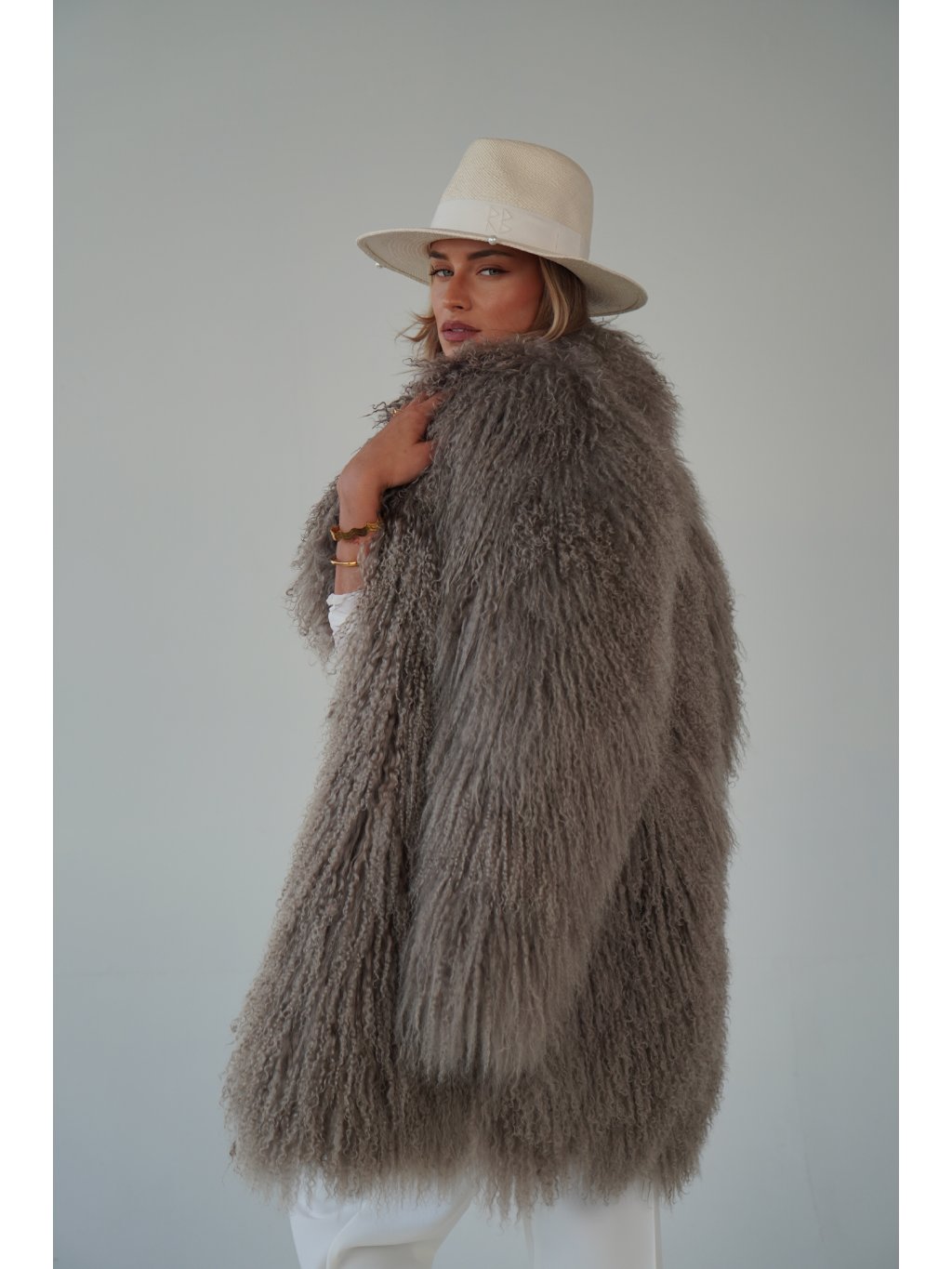 Stylový kabát z mongolské ovce